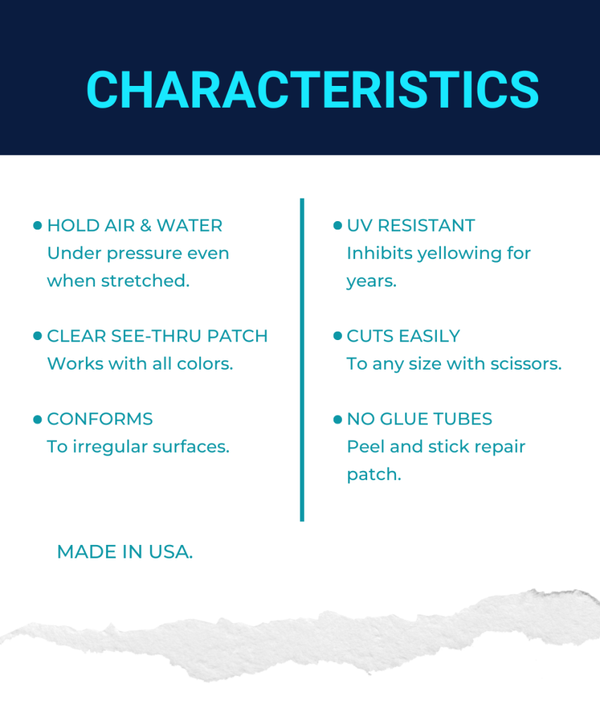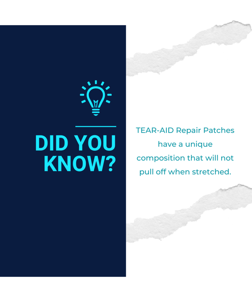 TEAR-AID Repair Patches have a unique composition that will not pull off when stretched.